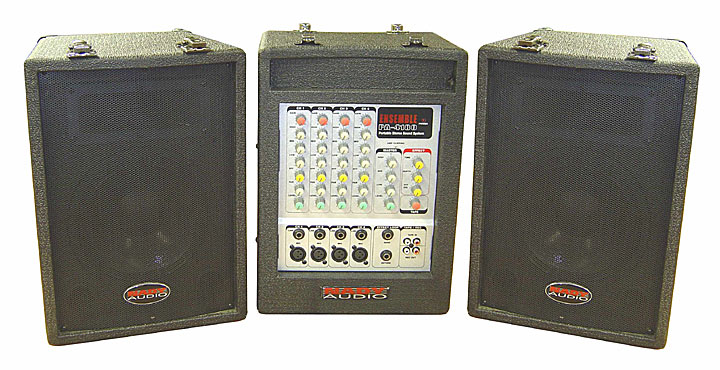 portable PA package with carrying/pulling handle and wheels for