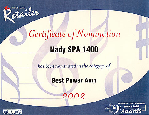 1400 for "Best Power Amp" of the year (2002). The Music & Sound
